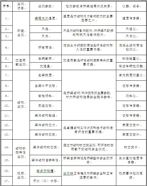 根据包树高速黄河大桥健康监测系统的目的及功能要求,并结合本黄河大桥的结构形式及所处位置黄河的水文情况,包树高速黄河大桥健康监测系统的监测项目如下: