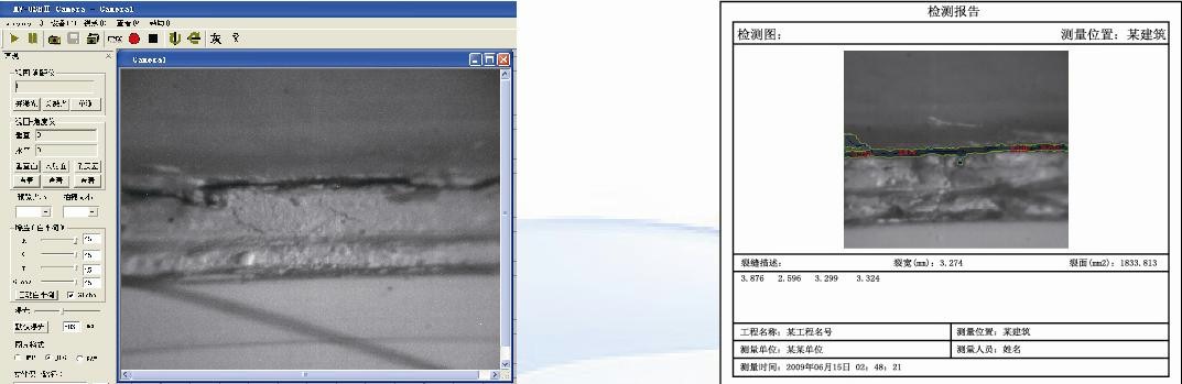 3、可现场显示裂缝数据,后处理软件可自动搜索、提取、计算裂缝宽度,自动生成裂缝检测报告。